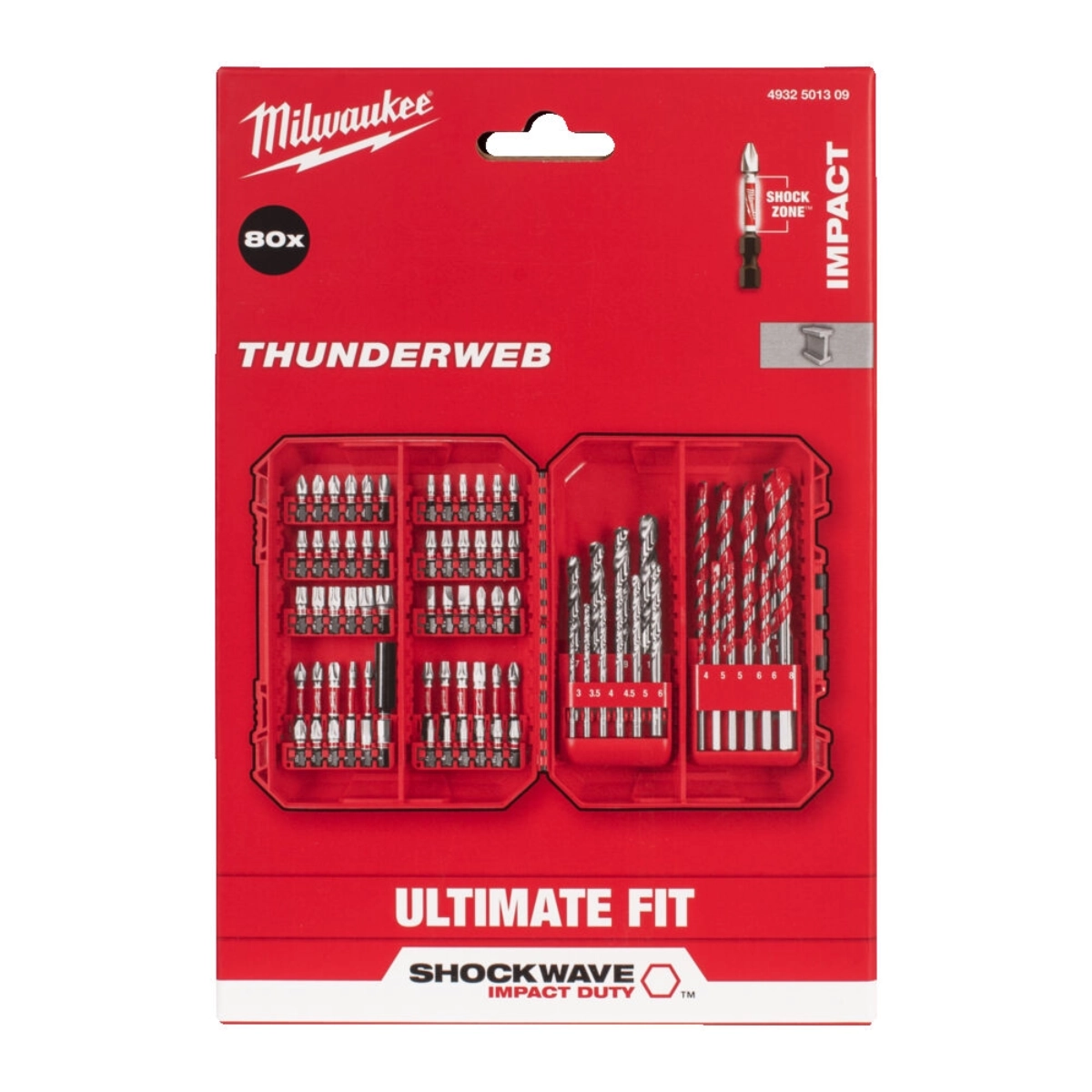 Zestaw bitów udarowych Shockwave i wierteł Milwaukee 80szt.