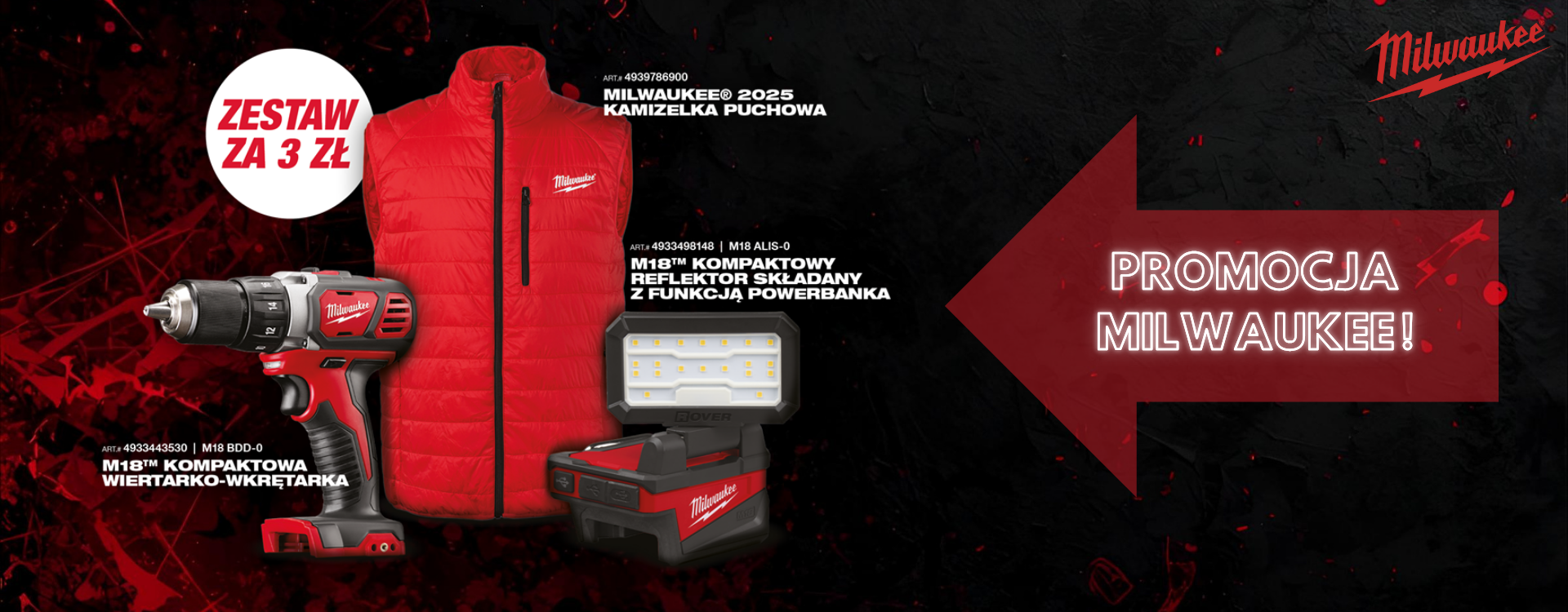*Lista punktów biorących udział w promocji: https://static.milwaukeetool.eu/NetC.MilwaukeeTools/media/Polish-media-library/Polish_upload_MB/Lista_autoryzowanych_dystrybutorow_MILWAUKEE_Odbierz_zestaw_za_3_zl_1.pdf