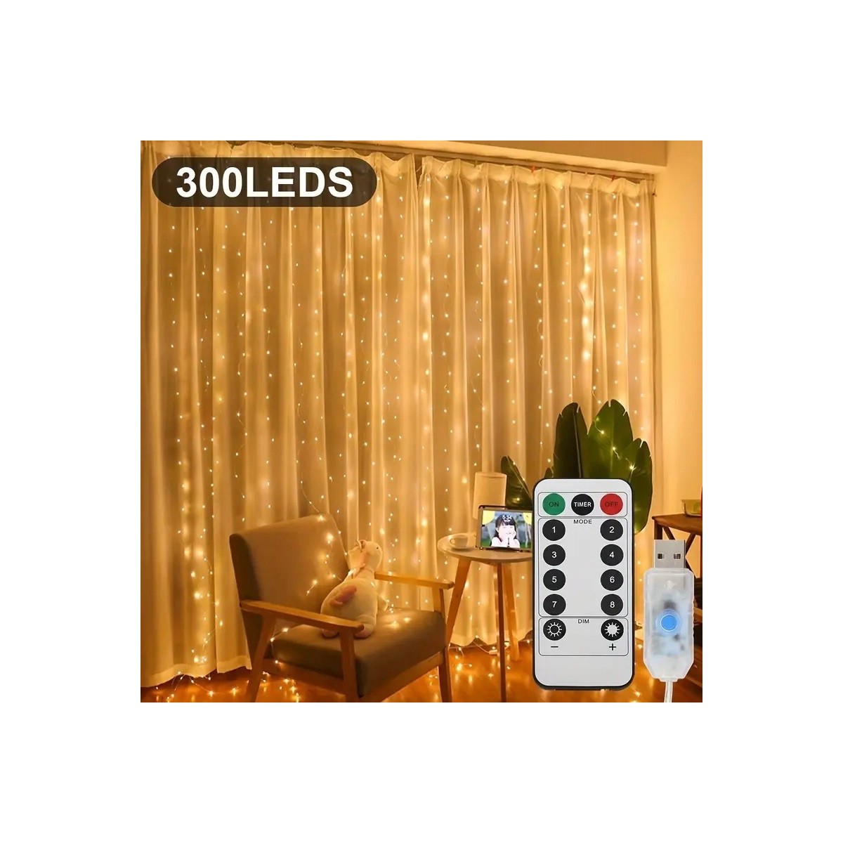 ✅ 300 diod LED w ciepłej bieli (żółtej barwie) – subtelne, miękkie światło tworzy przytulny nastrój.