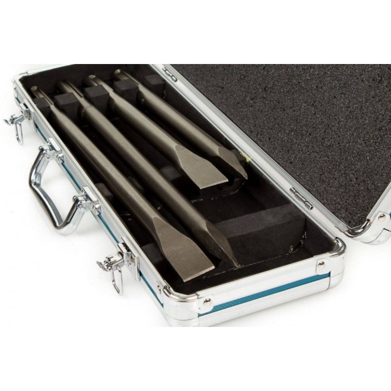 Zestaw dłut SDS-Max w walizce. Zawiera 2 sztuki dłut płaskich oraz 2 sztuki dłut szpicaków.