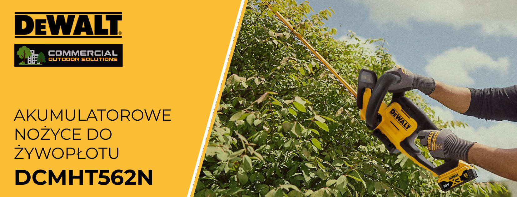 - Nożyce do żywopłotu DEWALT DCMHT562 (bez akumulatorów i ładowarki)