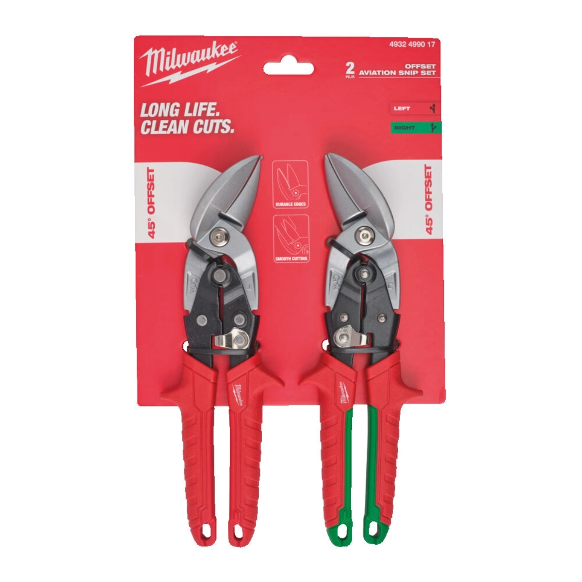 ✅ Zestaw 2 szt. – zawiera lewe i prawe offsetowe nożyce do blachy.