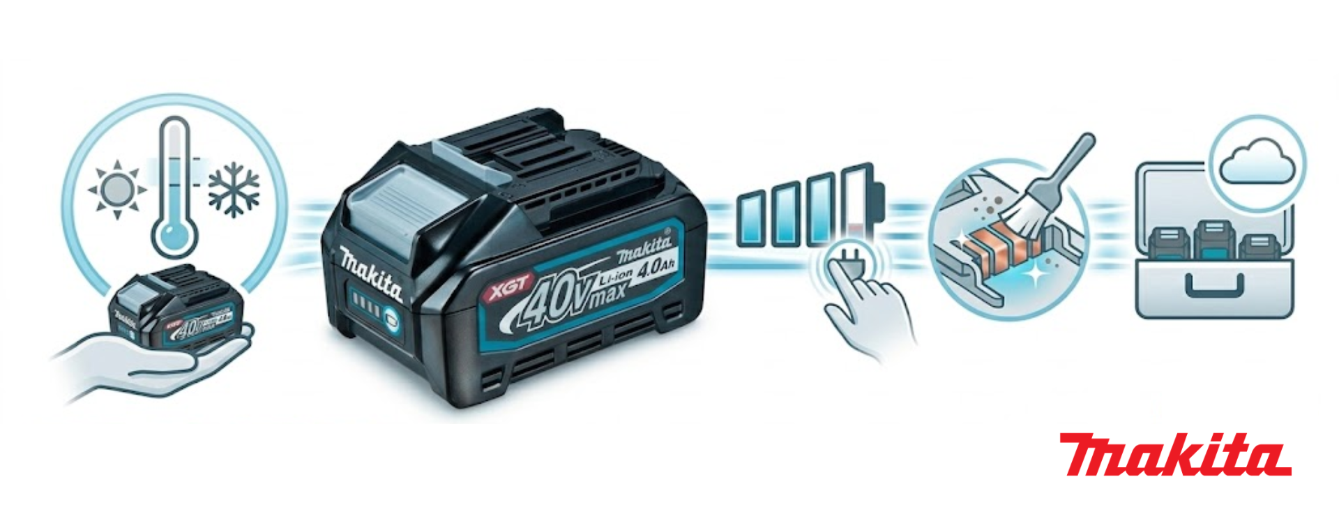Niektóre narzędzia Makita mają systemy zabezpieczające akumulator przed przegrzaniem, jednak prawidłowe przechowywanie jest kluczowe. Dzięki temu bateria zachowa więcej cykli ładowania i stabilną wydajność.