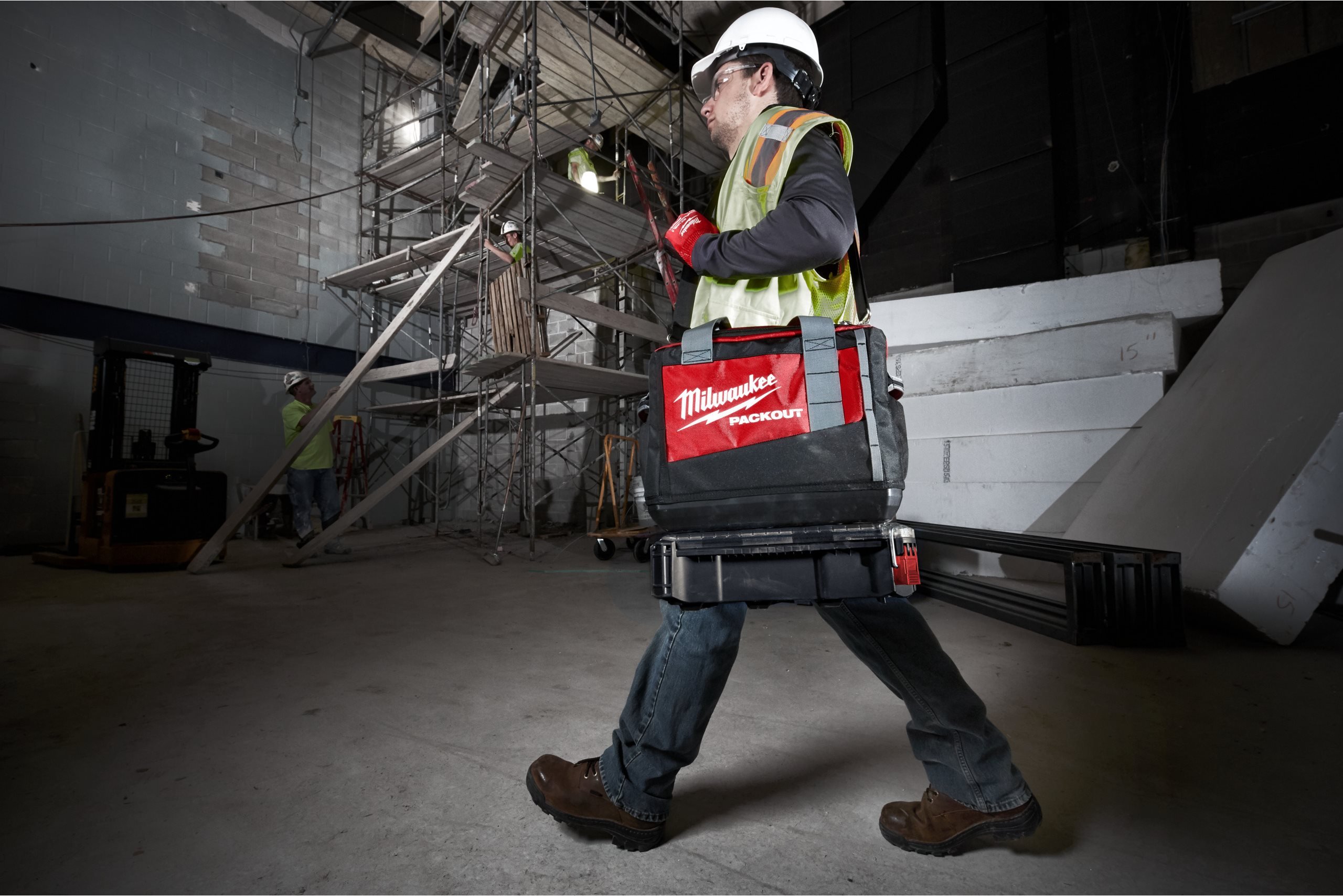 Milwaukee PACKOUT™ to modułowy system przechowywania narzędzi i akcesoriów, który łączy w sobie skrzynki, torby, organizery, szuflady oraz wózki transportowe. Poszczególne elementy można ze sobą łączyć pionowo i poziomo, tworząc dopasowaną do swoich potrzeb konfigurację.