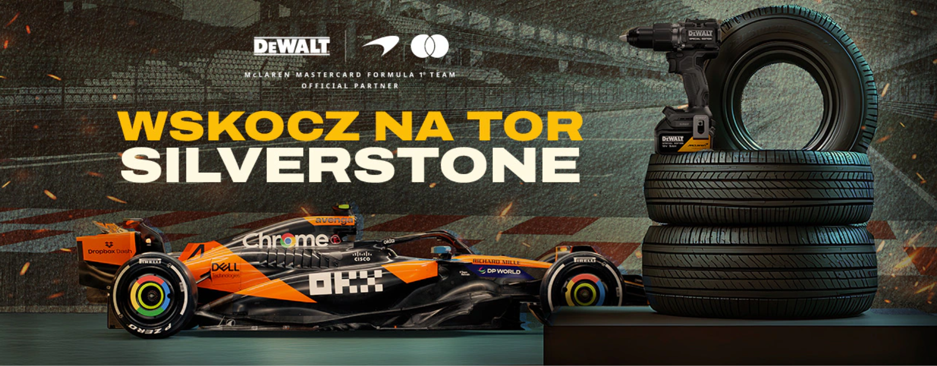 Marka DEWALT we współpracy z zespołem McLaren F1 Team przygotowała wyjątkowy konkurs, w którym możesz wygrać niepowtarzalne doświadczenie jazdy na torze Silverstone Race Circuit w Wielkiej Brytanii. 🏁