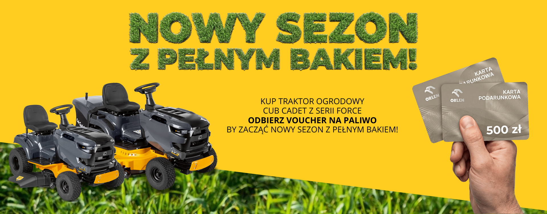 Marka Cub Cadet przygotowała promocję, w której przy zakupie wybranych traktorów ogrodowych z serii Force możesz otrzymać elektroniczną kartę paliwową nawet do 500 zł.